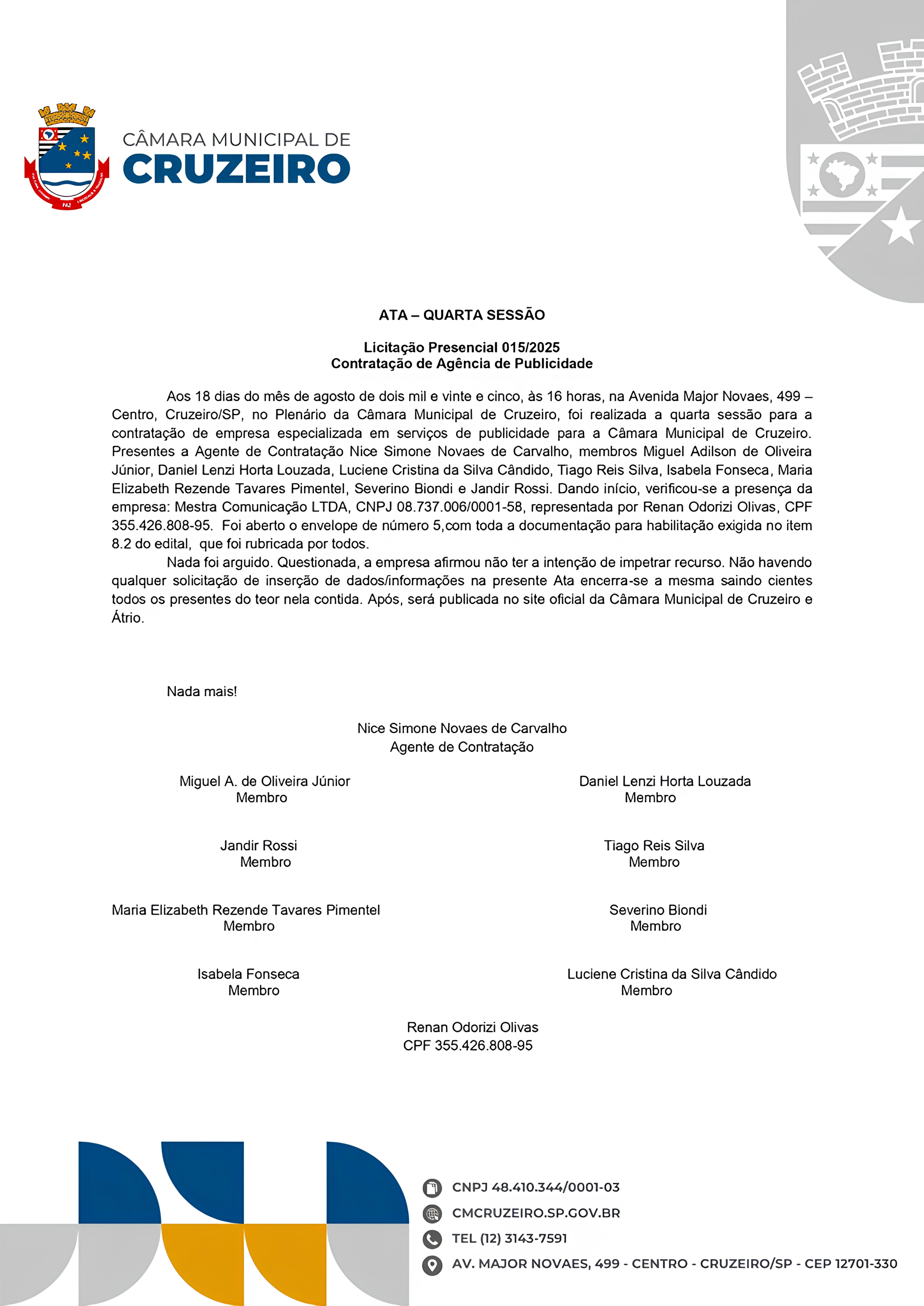Artigo anterior: AVISO DE CONTRATAÇÃO - Concorrência Presencial de Licitação Nº 15/2025